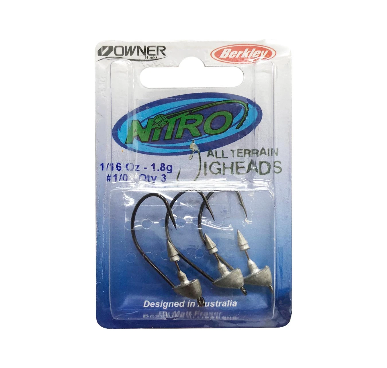 The Berkley Nitro All Terrain Jig Heads are a weedless style jighead designed to be fished around structure and feature a G-lock hook system to ensure your plastics stay on. They’re built on high quality Owner hooks.