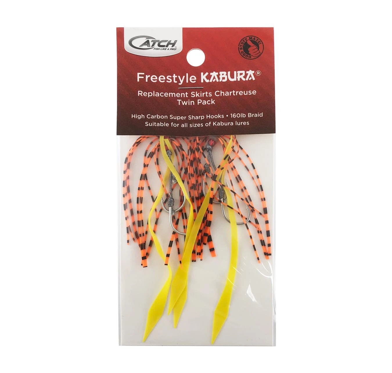 It’s inevitable when using kabura jigs that fish will bite at your skirts and either tear them off completely or wear them down eventually, so we’ve got you covered! These kabura jig replacement skirts come in a range of colours to suit pretty well any kabura style jigs. Fitted with quality Japanese Owner hooks. Simply slide the braided loop through the head of your kabura jig head, tie the leader directly onto it and you’re ready to fish again!