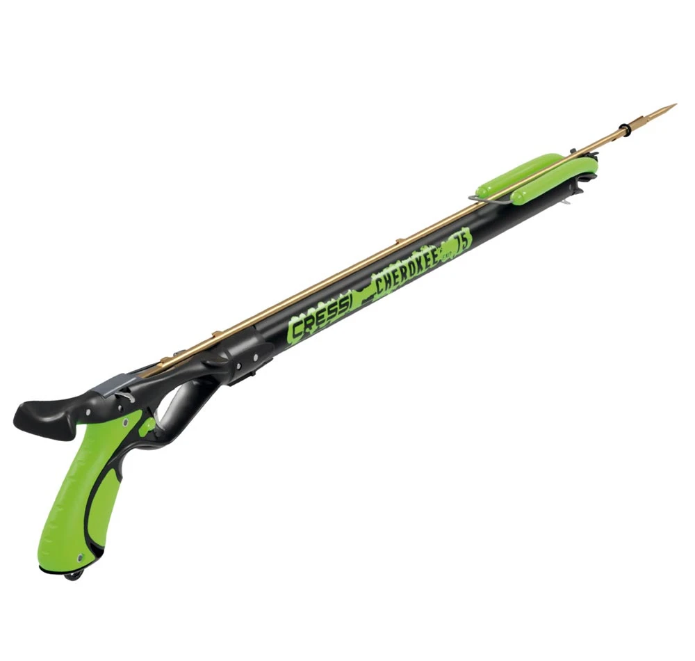 The Cressi Cherokee EXO Speargun has an aircraft-grade anodised aluminium barrel with integrated spear rail to increase rigidity and hence accuracy. The ergonomic pistol-style grip is engineered from a glass filled nylon for strength and loading butt for comfort when chest loading.