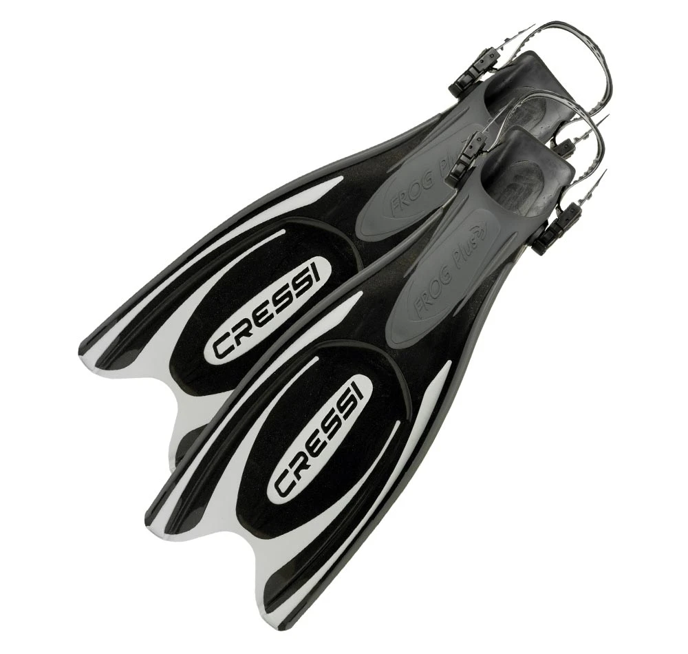 The Cressi Frog Plus Fin is an open-heel fin designed for best use with dive booties that have a semi-rigid sole.