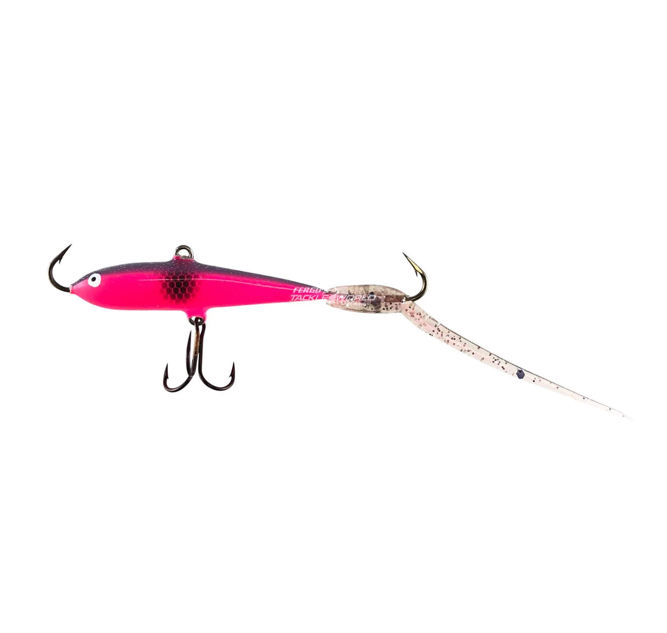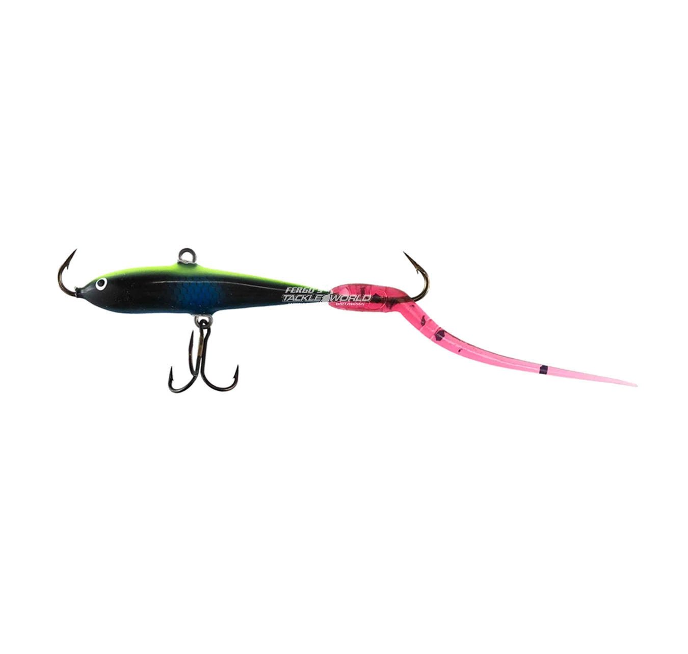 The Flyeye is a unique little metal jig with a nice long soft plastic trailer tail. It’s special design allows it to jump in one direction when jigged, and then turn and jump in the opposite direction for the next jump, which draws a lot of attention especially with its flashy long tail.