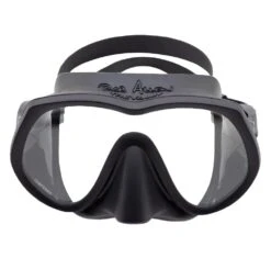 A single lens mask with a frameless design that offers exceptional field of vision compared to standard masks. Due to the frameless design and skirt shape the mask also offers surprisingly low volume due to the face positioned further into the mask compared to regular masks and the lens sitting closer to the eyes improved all round vision.Â