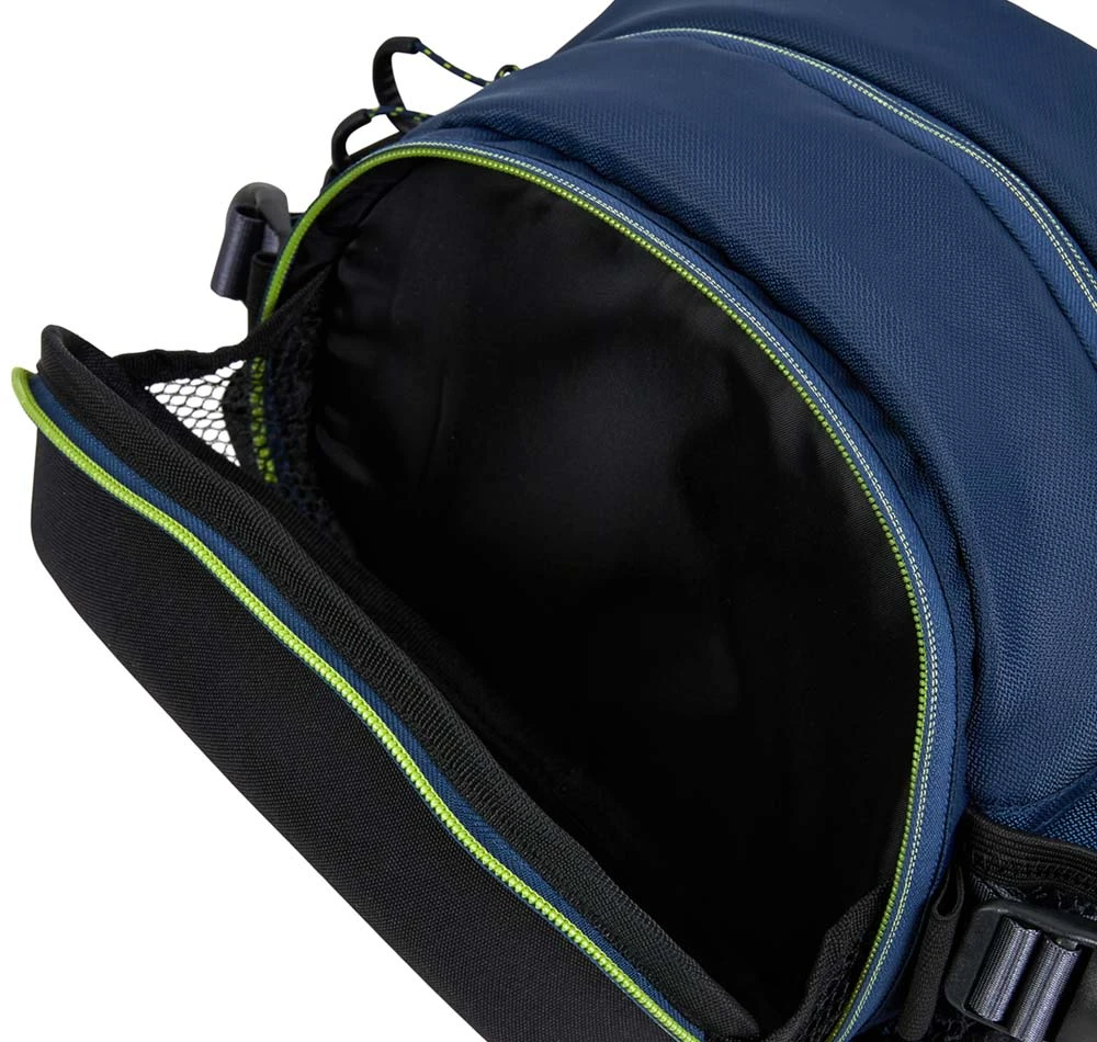 The Shimano Waist Bag comes with two main compartments and a reinforced padded strap. The larger compartment is suitable for one tackle tray and accessories, including a mesh pocket for extra items. The smaller compartment features a moulded front for durability and protection and is perfect for storing lures and fishing tools while on the move.