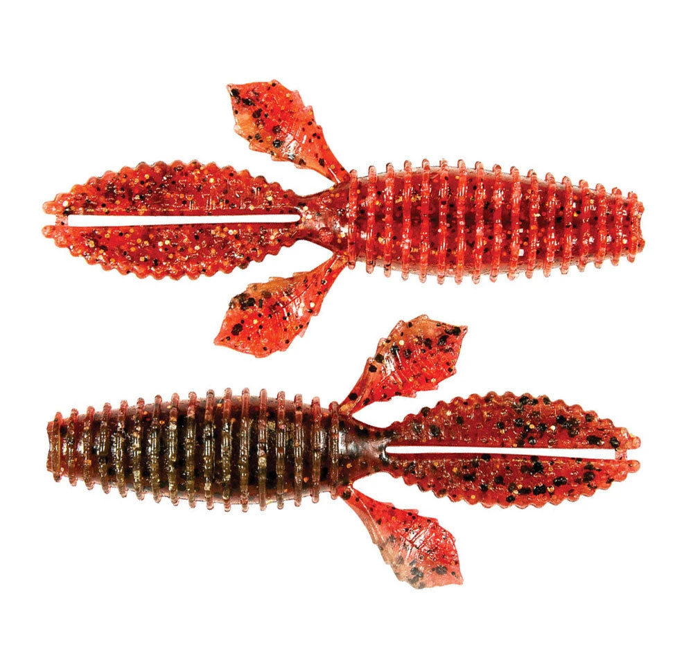 Some features of the ZMan TRD BugZ soft plastics include a hook pocket for easy and weedless rigging, two larger claws that flutter whilst moving through the water, and two offset smaller claws that do the same.